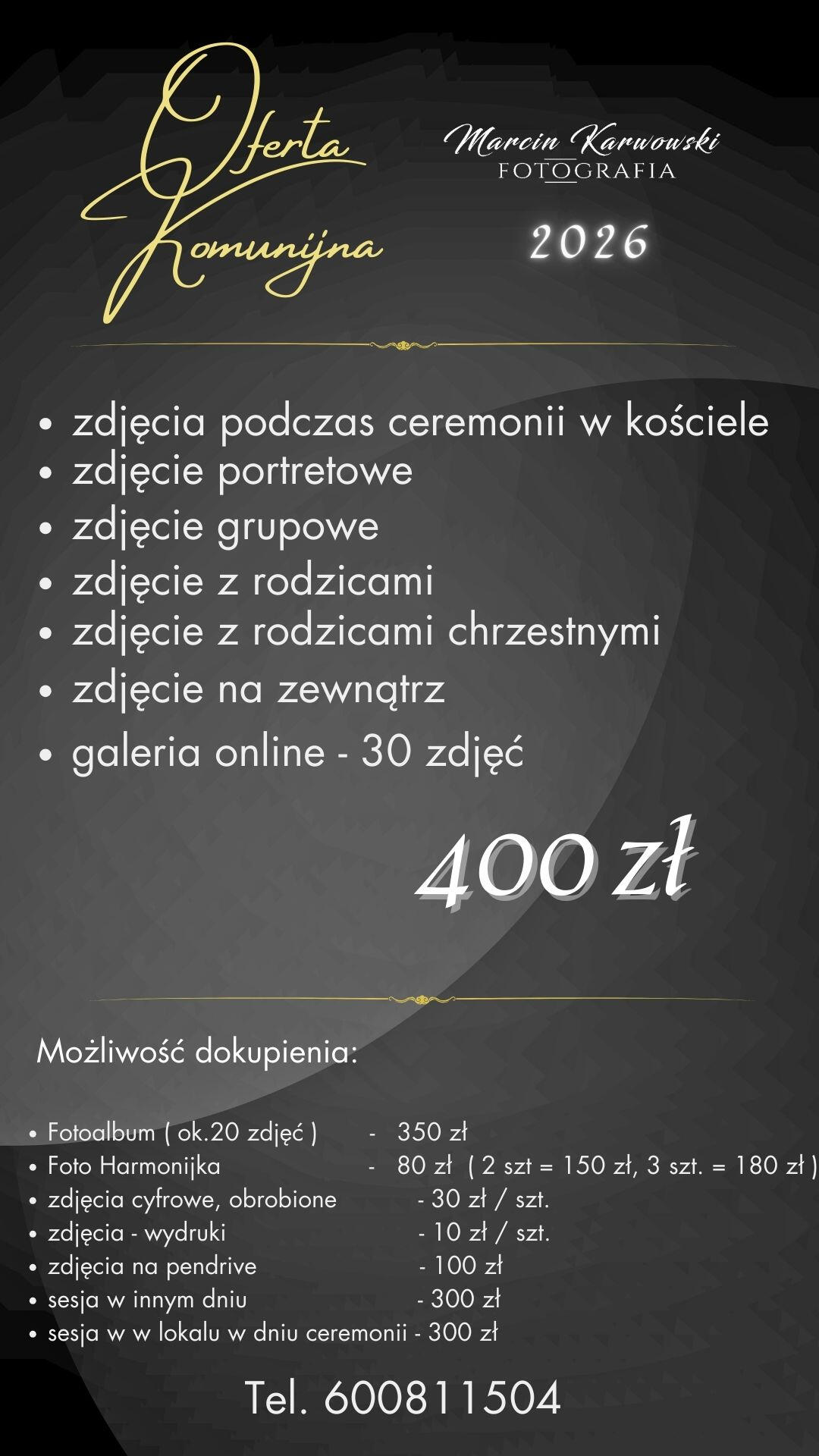 * przy zamówieniu pamiątek drukowanych, obowiązuje przedpłata za całość zamówienia.